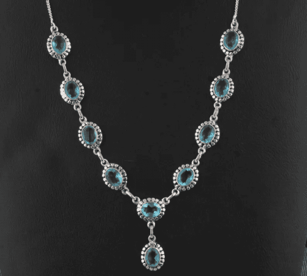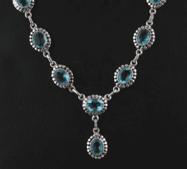 Blue Topaz Necklace, Oval Gemstone Necklace