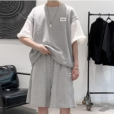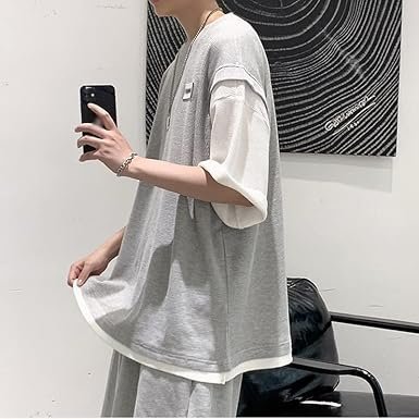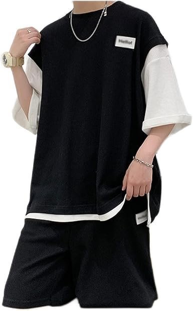 CSCDD Patchwork Color Half Sleeve T-Shirts Men’s Sets All Match Loose Casual Short Homme