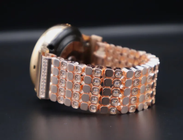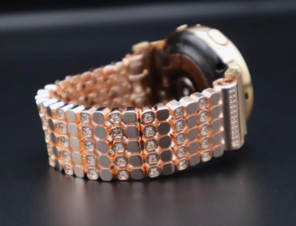 This handmade rhinestone rose gold, silver or gold metal smart watch band is a stylish and functional accessory that is compatible with Apple, Samsung, Fitbit smartwatch bands. The combination of rhinestones and rose gold metal creates a glamorous and sophisticated look that is perfect for dressing up or down. The custom size band has an ELASTIC CORD and will be designed for your wrist size, ensuring that the watch stays in place during physical activity or daily wear. The metal is hypoallergenic and free of nickel, making it safe for those with sensitive skin. The metal has a high shine and reflects light beautifully, enhancing the sparkle of the rhinestones.