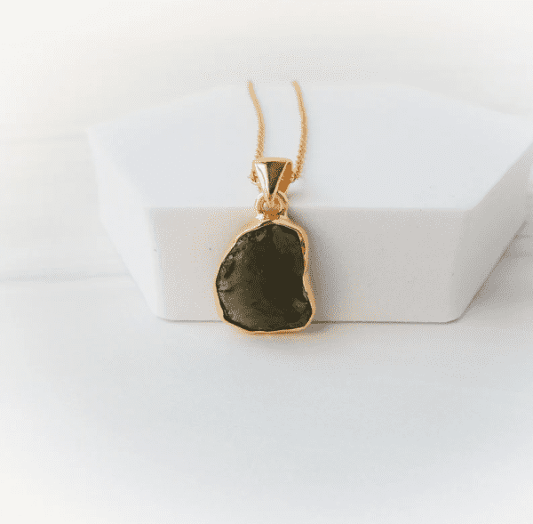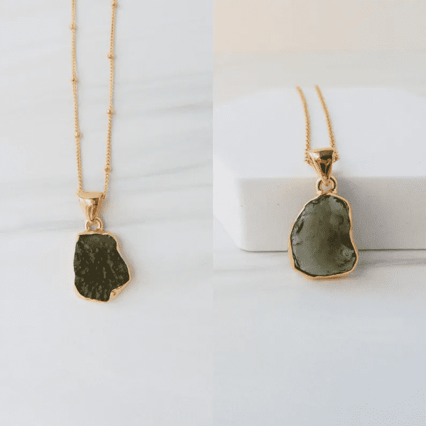 Moldavite Necklace Gold • Raw Green Gemstone • Gold Vermeil Authentic Meteorite Necklace • Genuine Moldavite • Healing Stone • Holiday Gift