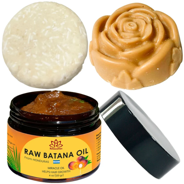 *Batana Conditioner Bar: Complement your shampoo with our Batana conditioner bar, designed to hydrate and detangle your hair, ensuring smoothness and manageability.