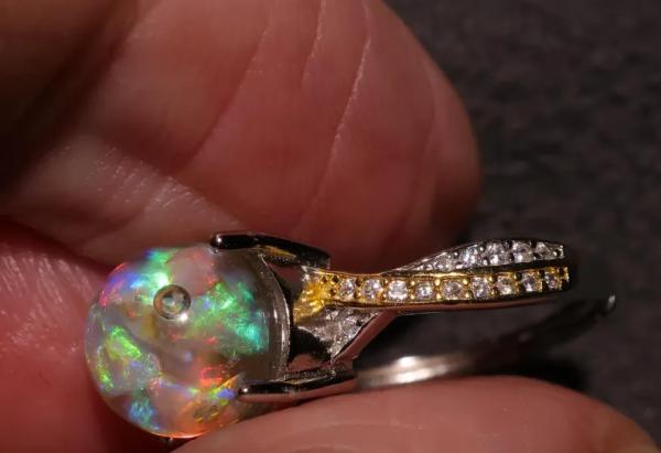Floating Opal Ring with 3+ carats Gem grade Lightning Ridge crystal opal from Australia.